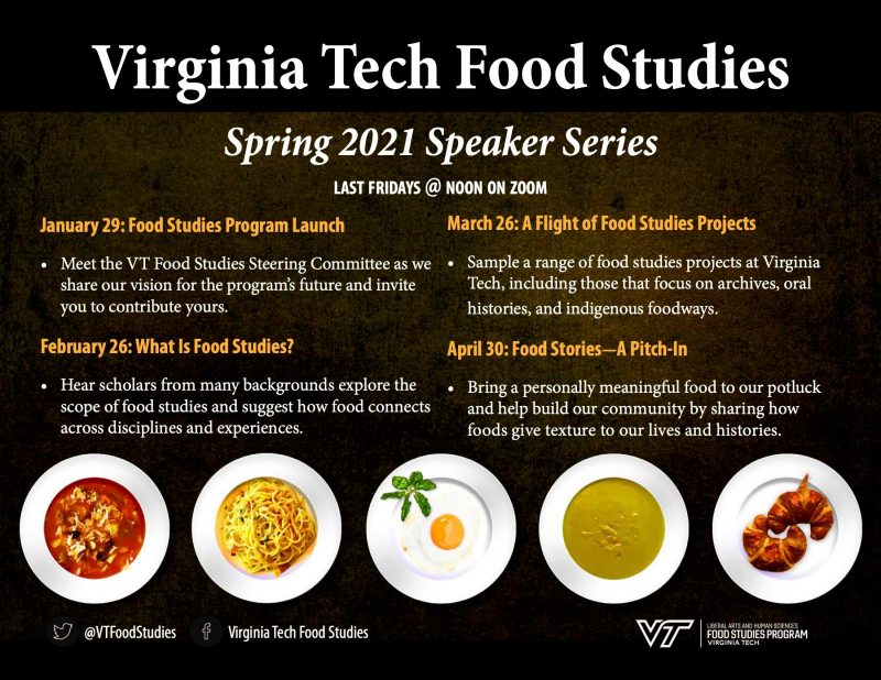 Scholars from a wide range of backgrounds will consider what food studies is and how food connects across disciplines and experiences. Panelists include Letisha Engracia Cardoso Brown (Sociology), Danille Christensen (Religion & Culture), Jacob Lahne (Food Science & Technology), Kim Niewolny (Agricultural, Leadership, and Community Education), and Courtney Thomas (Political Science), moderated by Saul Halfon (Science, Technology, and Society). The conversation will also lead to smaller breakout rooms where we can think collectively about how food studies can facilitate shared inquiry and collaborative efforts. Register for the Zoom session here.